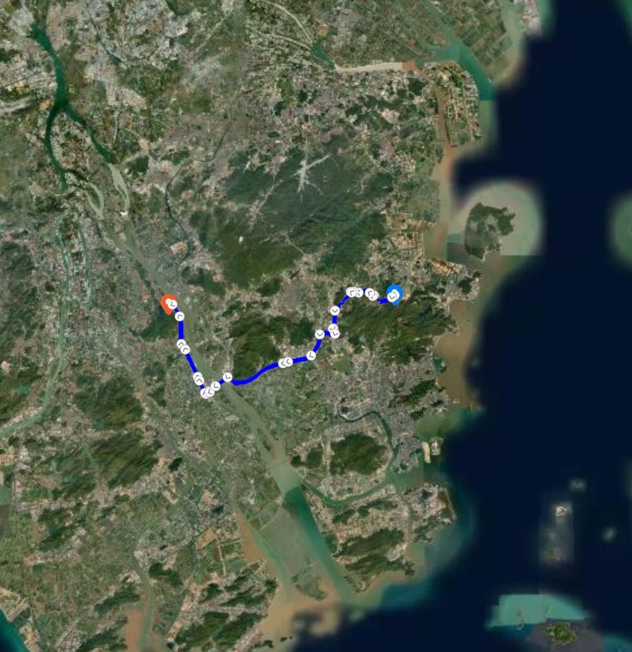 此处展现了磨刀门水道-河口-(水下)三角洲地貌以及和波浪的关系。三角洲环境是河流入海后形成的一套特殊的沉积相组合。河口为河流终点,即河流注入海洋的地方。 三角洲是在河流流入海洋、半封闭海、障壁保护的潟湖以及内陆湖等固定水体处形成的岸线突出部位的沉积。