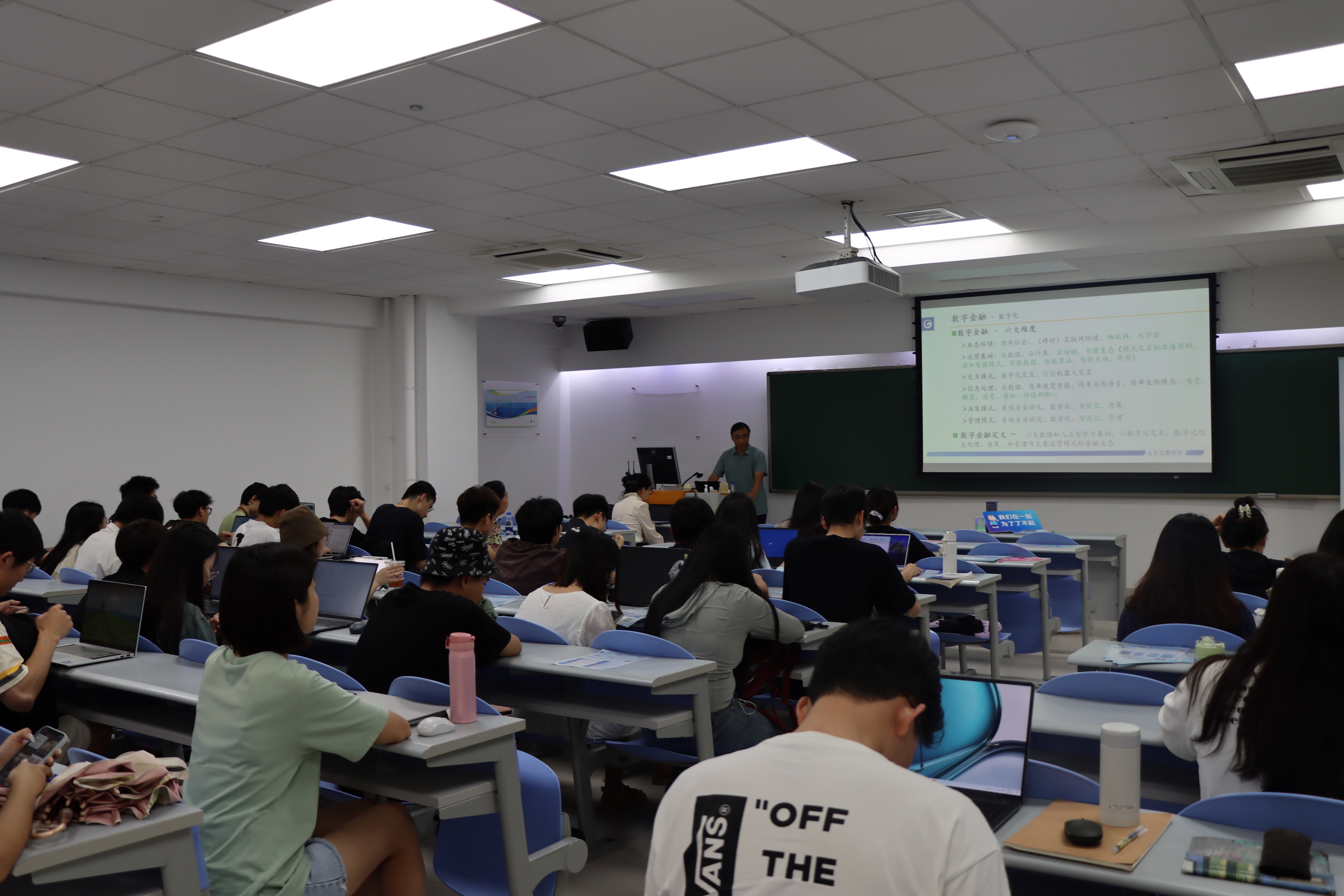 座谈会结束后,马上消费副总经理林亚臣在励教楼C205为应用统计专业研究生做了题为《数字金融案例分享-风险管理决策》的员工专题讲座。林亚臣在讲座中结合数字金融实际案例,深入介绍了风险管理决策的理论和实践应用。随后,马上消费人力资源部高级总监甄景宜就企业的培养体系、实习和就业岗位等进行了详细宣讲,为应用统计专业员工提供个性化就业指导。