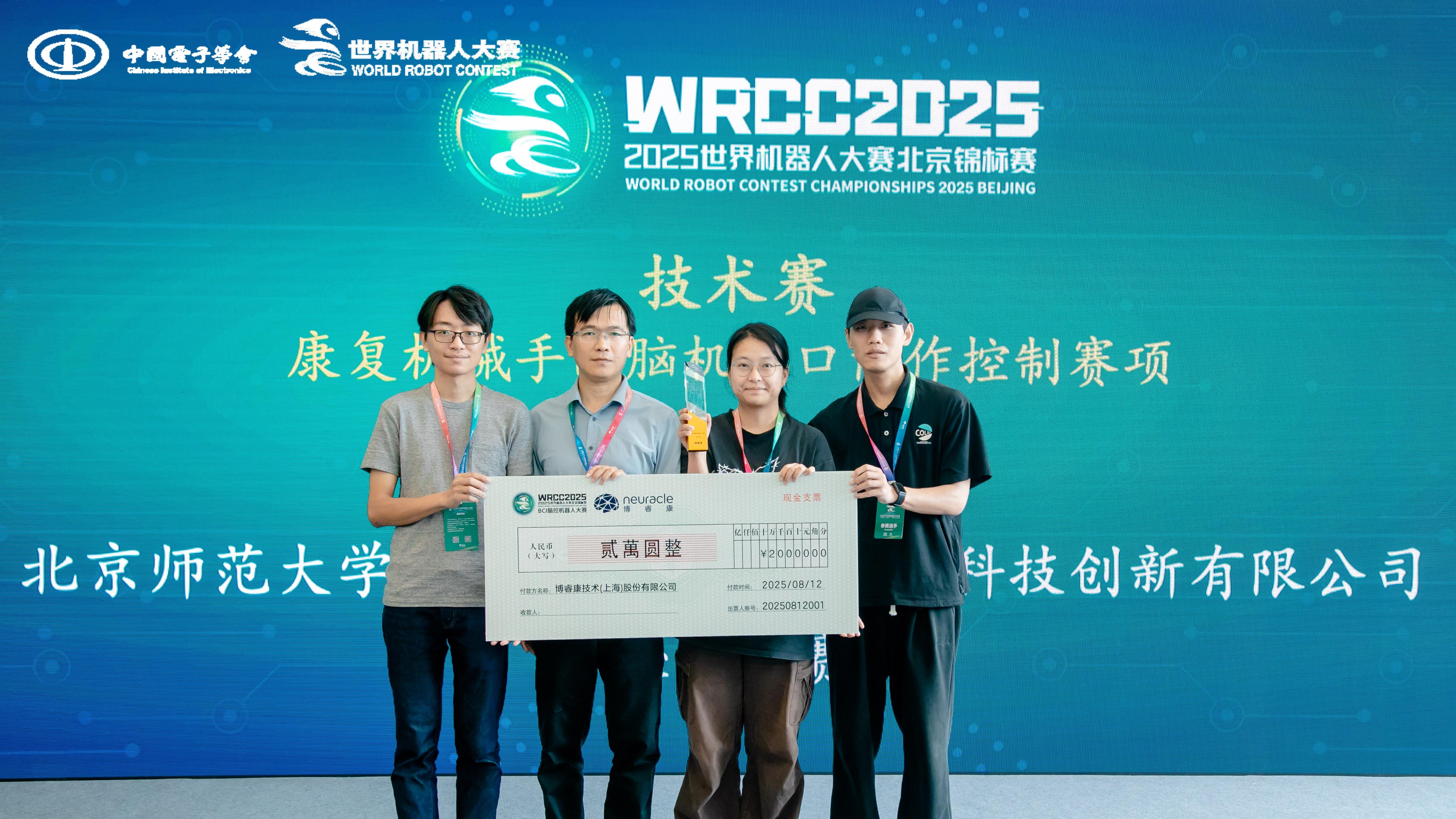 “2025世界机器人大赛——BCI脑控机器人大赛”在北京北人亦创国际会展中心举行,yl9193永利集团研究生团队获得“康复机械手脑机接口协作控制赛项”特等奖。