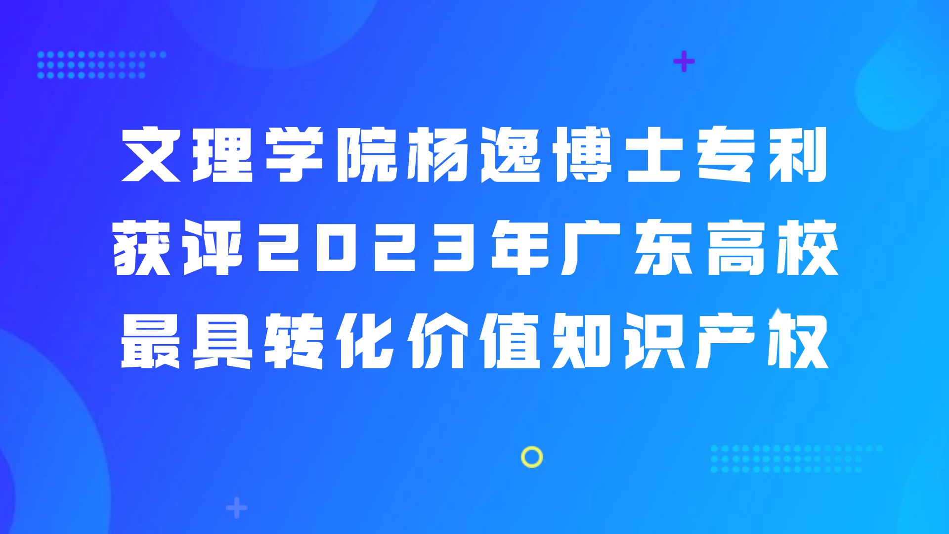 4月29日,广东高校科技成果转化中心公布了2023年广东高校最具转化价值知识产权评选的结果,yl9193永利集团杨逸博士的专利获评。