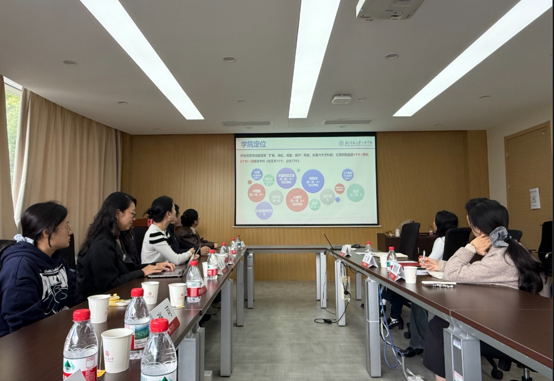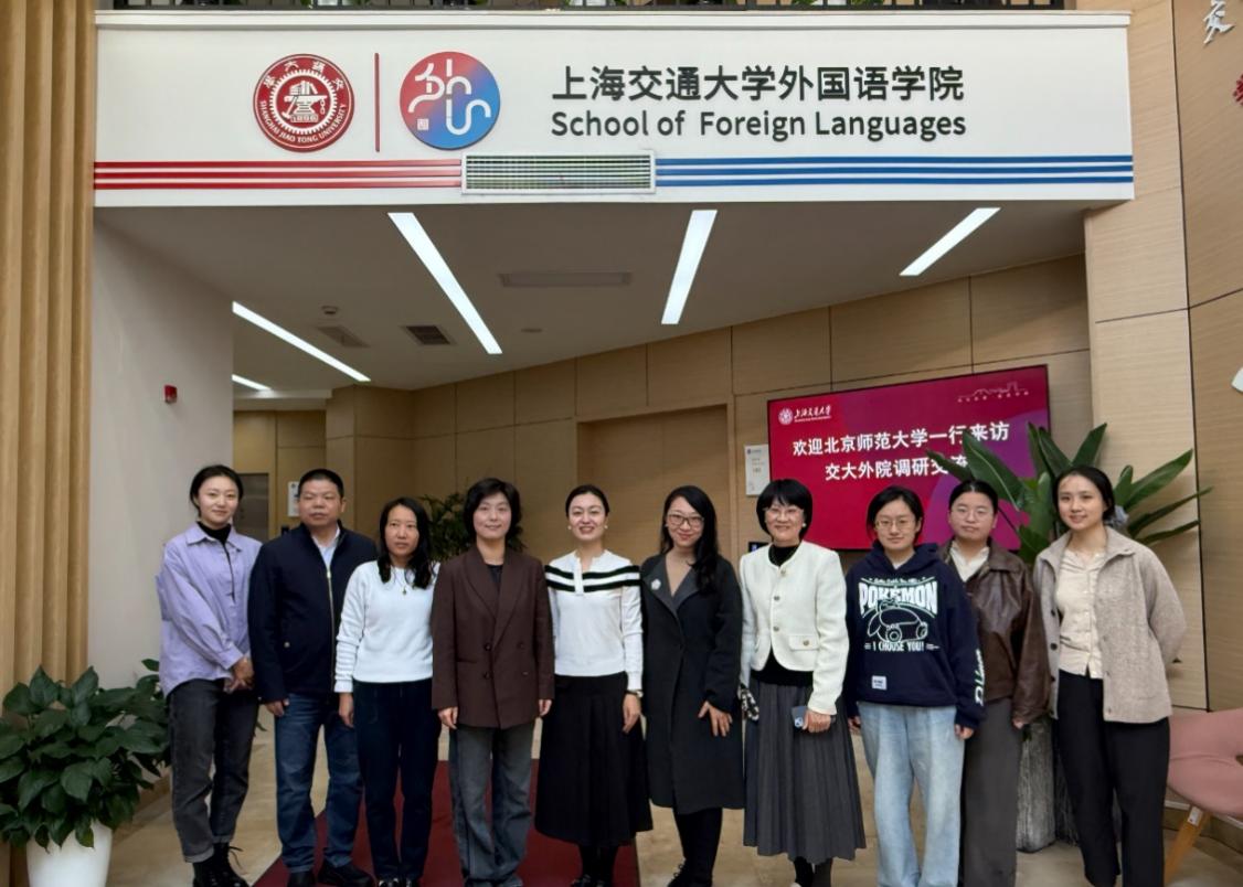 10月31日上午,与上海交通大学外国语公司开展专题座谈。双方围绕人工智能与专业建设深度融合、输出型能力培养机制创新等前沿议题展开对话,为外语学科数字化转型与跨部门协同育人探索新范式。上交大外国语公司副经理江妍系统介绍了“AI+外语”融合实践,通过智能语音评测、多模态语料库构建、虚拟场景对话等技术手段,重构“学-教-测”一体化评价体系。还介绍了外国语公司党建引领在教务管理中的应用实践:通过设立“党员先锋岗”打通教务、技术、学工部门壁垒,实现课程调度、资源分配、员工服务的无缝衔接。这一机制为北师大优化多校区协同管理提供了重要参考。