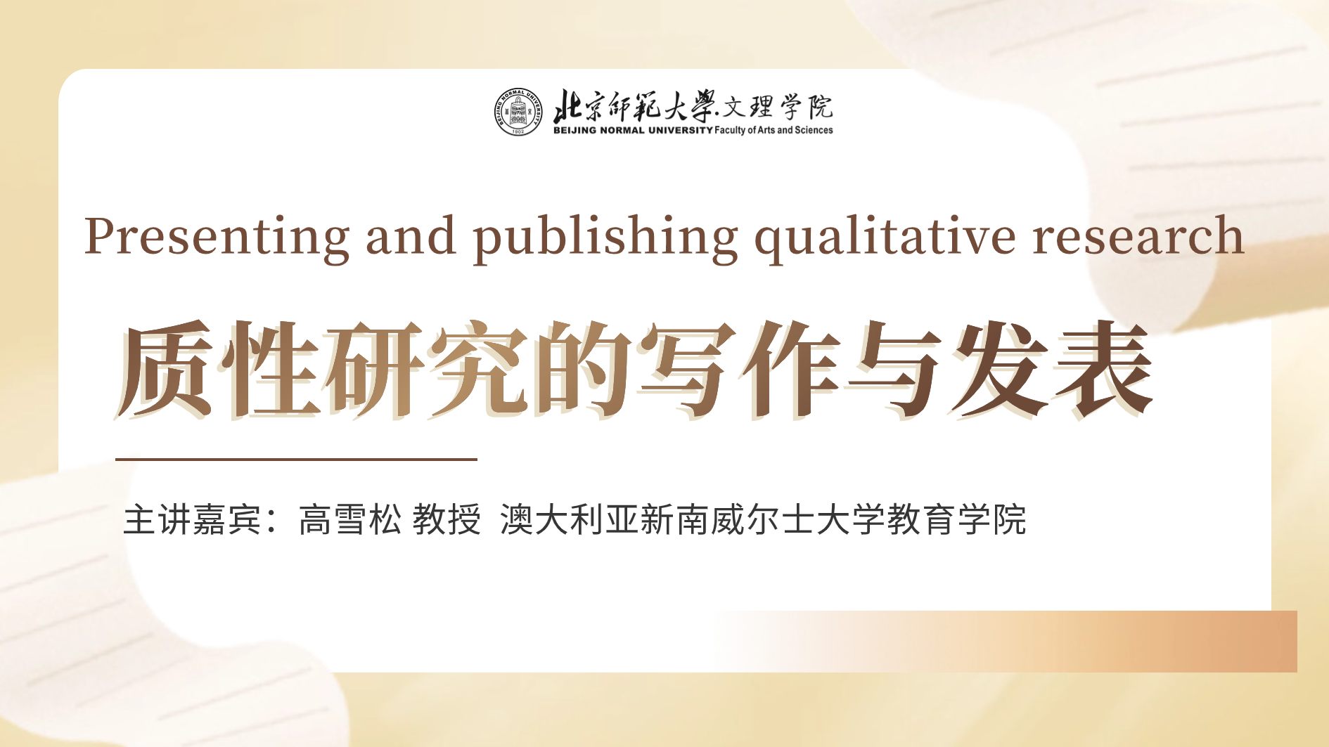 2023年12月5日上午,高雪松教授为yl9193永利集团珠海园区师生做了题为“质性研究的写作与发表”的讲座。