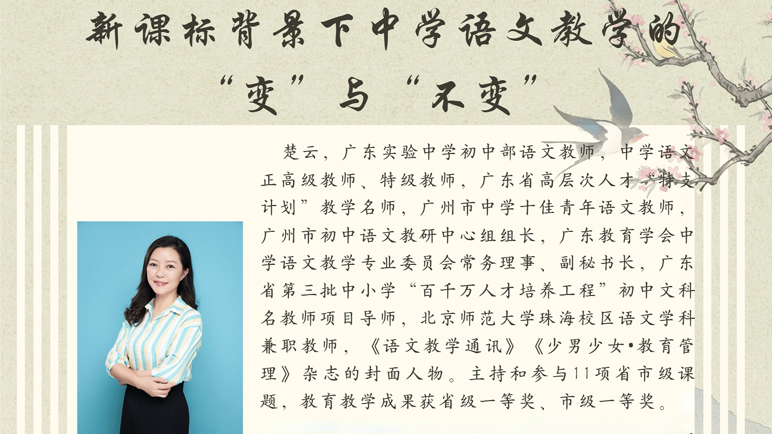 2023年3月24日晚,“南国北师凤凰山语文名师论坛”之六——新课标背景下中学语文教学的“变”与“不变”讲座,在励教楼C210教室举行。