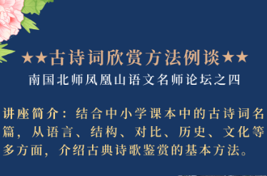 讲座简介:结合中小学课本中的古诗词名篇,从语言、结构、对比、历史、文化等多方面,介绍古典诗歌鉴赏的基本方法。
